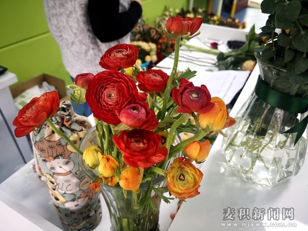 在工作人員的悉心指導下,大家將手上的玫瑰、白山茶,小雛菊等花材,按照步驟,有層次的搭配在一起,美麗的鮮花在大家手中翩翩起舞,現(xiàn)場又多了幾分甜美。一盆盆精美的插花,帶著節(jié)日氣息撲面而來,增添了一抹亮麗的色彩。第一次親手完成一個完整的插花作品,大家都笑得合不攏嘴。