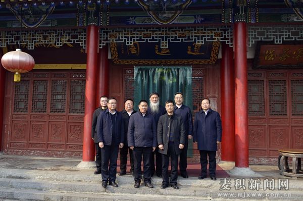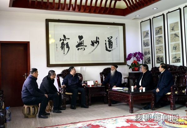 麥積區(qū)融媒體中心訊(記者 李云強(qiáng))帶著家鄉(xiāng)人民的新春祝福,1月22日,天水市政協(xié)副主席、麥積區(qū)委書記張智明,區(qū)人大常委會(huì)主任趙繼文,區(qū)政協(xié)主席高志強(qiáng),區(qū)委常委、副區(qū)長(zhǎng)周岳紅,區(qū)人大常委會(huì)副主任竇順良等四大組織領(lǐng)導(dǎo)一行專程赴陜西周至縣樓觀臺(tái),看望了全國(guó)政協(xié)常委、全國(guó)政協(xié)民族和宗教委員會(huì)副主任、中國(guó)道教協(xié)會(huì)咨議委員會(huì)主席任法融,并送去了麥積區(qū)65萬(wàn)人民的良好祝愿和新春祝福。