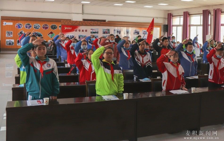 大會在莊嚴嘹亮的《中華人民共和國國歌》和《中國少年先鋒隊隊歌》中拉開帷幕,現(xiàn)場全體少先隊員們用規(guī)范的隊禮向麥積區(qū)第一次少代會的召開致敬并集體重溫入隊誓詞。禮畢后,全體少先隊員高唱《我們是共產(chǎn)主義接班人》。會議傳達學習了習近平致中國少年先鋒隊第八次全國代表大會的賀信。