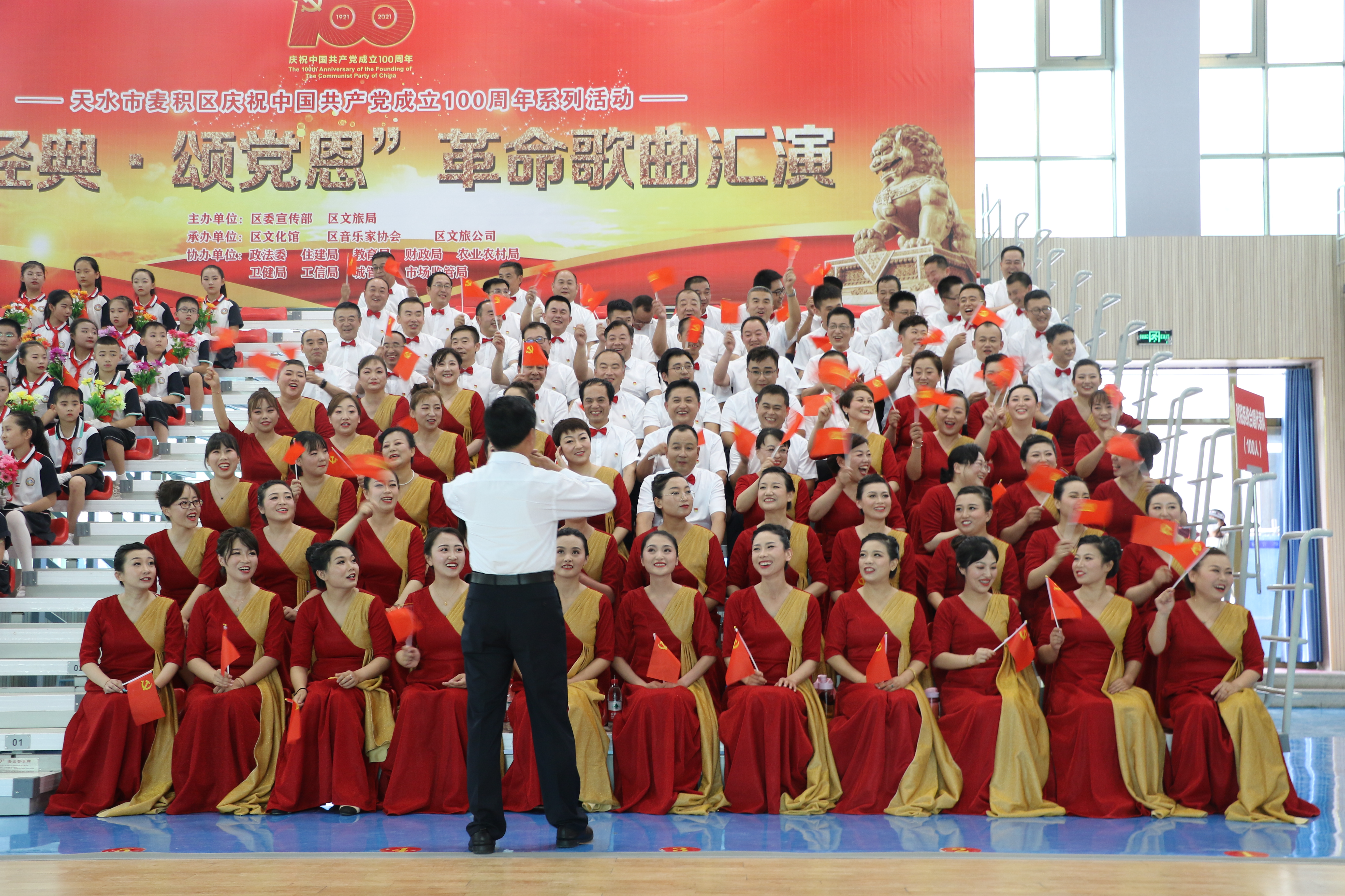 麥積區(qū)融媒體中心訊(記者 丁承志 丁啟) 6月29日,麥積區(qū)慶祝中國(guó)共產(chǎn)黨成立100周年系列活動(dòng)“唱經(jīng)典·頌黨恩”革命歌曲匯演在道北體育館隆重舉行。來自全區(qū)各部門、單位的11支合唱代表隊(duì)伍統(tǒng)一著裝、精神飽滿,用嘹亮的歌聲,唱出對(duì)黨的無限忠誠(chéng),唱出對(duì)黨的深厚情感,唱出對(duì)黨的美好祝愿。
