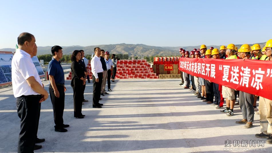 麥積區(qū)融媒體中心訊(記者 丁承志 姚苗)“酷暑送清涼、點滴暖人心”。7月30日,市政協(xié)副主席、麥積區(qū)委書記成少平帶領(lǐng)區(qū)四大組織相關(guān)領(lǐng)導(dǎo)開展“夏送清涼”慰問一線職工活動,看望慰問奮戰(zhàn)在高溫一線的廣大干部職工,為他們送去了夏季防暑消暑慰問品,也帶去了區(qū)四大組織誠摯的問候與祝福。區(qū)人大常委會副主任楊彥芳,副區(qū)長成紅梅,區(qū)政協(xié)副主席張福元一同慰問。