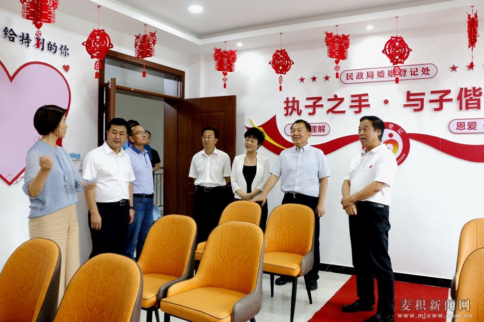 調(diào)研組一行先后來到天水市麥積全國綜合養(yǎng)老示范基地、麥積鎮(zhèn)政務(wù)服務(wù)大廳、橋南街道辦事處瑞苑社區(qū)、麥積區(qū)婚煙登記處,詳細(xì)了解民政法治建設(shè)工作進(jìn)展情況,并與民政部門負(fù)責(zé)人就推進(jìn)殯葬服領(lǐng)域移風(fēng)易俗、做好婚煙登記工作、開展社會(huì)救助等工作進(jìn)行交流探討。