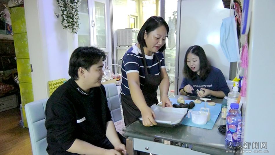 往年中秋,熱愛烘焙的王霞都會在中秋節(jié)前提前做月餅。王霞覺得,將自己親手制作好的金黃油亮小巧精致的月餅簡單包裝后拿來送人再合適不過。今年家里更加熱鬧,侄女一家和朋友也趕來幫忙做月餅,一家人吃個團(tuán)圓飯,共享一桌團(tuán)圓,共賞一輪明月。