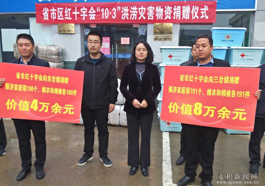 麥積區(qū)融媒體中心訊(見習(xí)記者 王惠萍)10月13日下午,省市區(qū)紅十字會(huì)向麥積區(qū)“10.3”洪澇災(zāi)害受災(zāi)群眾捐贈(zèng)物資儀式,在麥積區(qū)三岔鎮(zhèn)舉行。市紅十字會(huì)專職副會(huì)長陳向榮,市紅十字會(huì)主任王虎、王仲軒出席捐贈(zèng)儀式,副區(qū)長成紅梅出席捐贈(zèng)儀式并致辭。