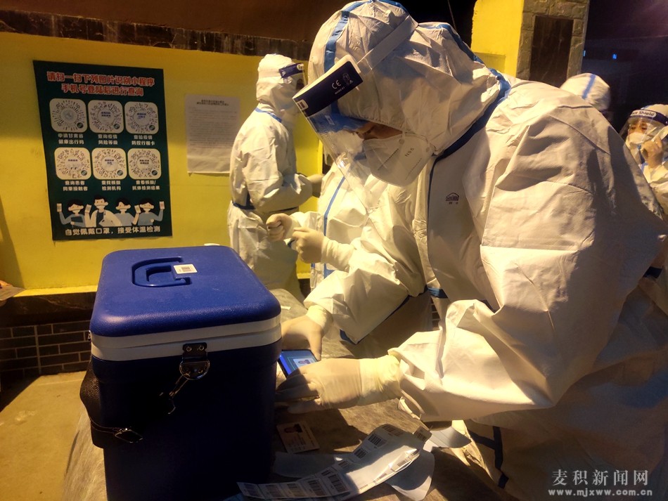 據(jù)正在核酸檢測采樣點開展工作的濱河路社區(qū)居委會副主任謝鴻海介紹,此次核酸檢測采樣的醫(yī)護人員是來自秦安縣各鄉(xiāng)鎮(zhèn)抽調(diào)支援麥積區(qū)的隊伍,有了他們的大力援助,濱河路社區(qū)核酸采樣工作才如此快速而又高效的進行。如果時間允許,還會將核酸檢測采樣擴展到天水市第八中學家屬樓、濱河樓等,預(yù)估11月1日上午核酸檢測采樣將進行完畢。