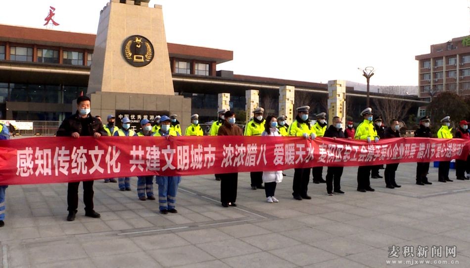 麥積區(qū)融媒體中心訊(記者 宋倩倩 劉秋鈺 王瑋瑕 王惠萍)1月10日是我國傳統(tǒng)節(jié)日“臘八節(jié)”,麥積區(qū)總工會攜手愛心企業(yè)開展“臘八節(jié)”愛心送粥活動,為麥積城區(qū)一線執(zhí)勤的交通警察、城管隊員、志愿者和環(huán)衛(wèi)工人們送去了熱氣騰騰的臘八粥、菜夾餅,讓他們在寒冬里感受到來自社會大家庭的溫暖和關(guān)愛。