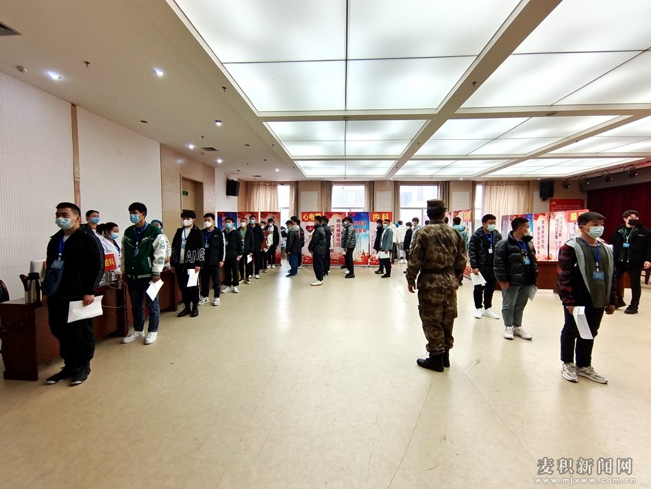 麥積區(qū)融媒體中心訊(記者 劉秋鈺 王瑋瑕)保家衛(wèi)國(guó)終不悔,綠色軍營(yíng)獻(xiàn)青春。近日,在天水市中西醫(yī)結(jié)合醫(yī)院專設(shè)的麥積區(qū)2022年上半年征兵體檢站內(nèi),應(yīng)征青年在各檢查科室門口有序排隊(duì)等候體檢。他們抱著投身綠色軍營(yíng),為國(guó)防建設(shè)貢獻(xiàn)青春力量的信心和決心,積極認(rèn)真地接受祖國(guó)挑選。