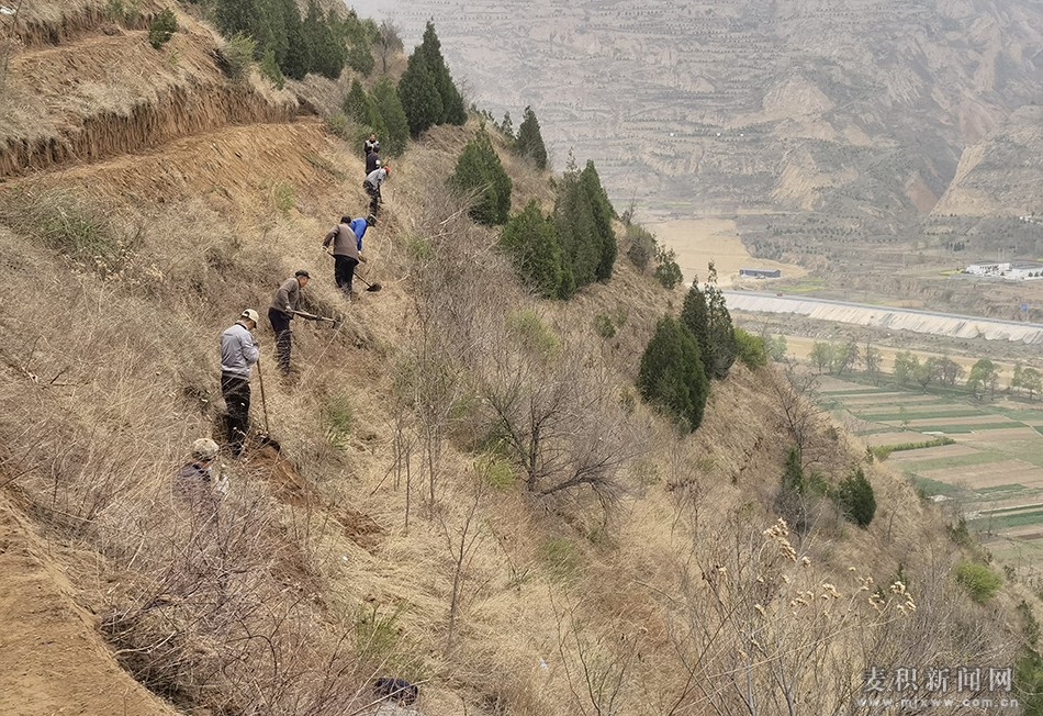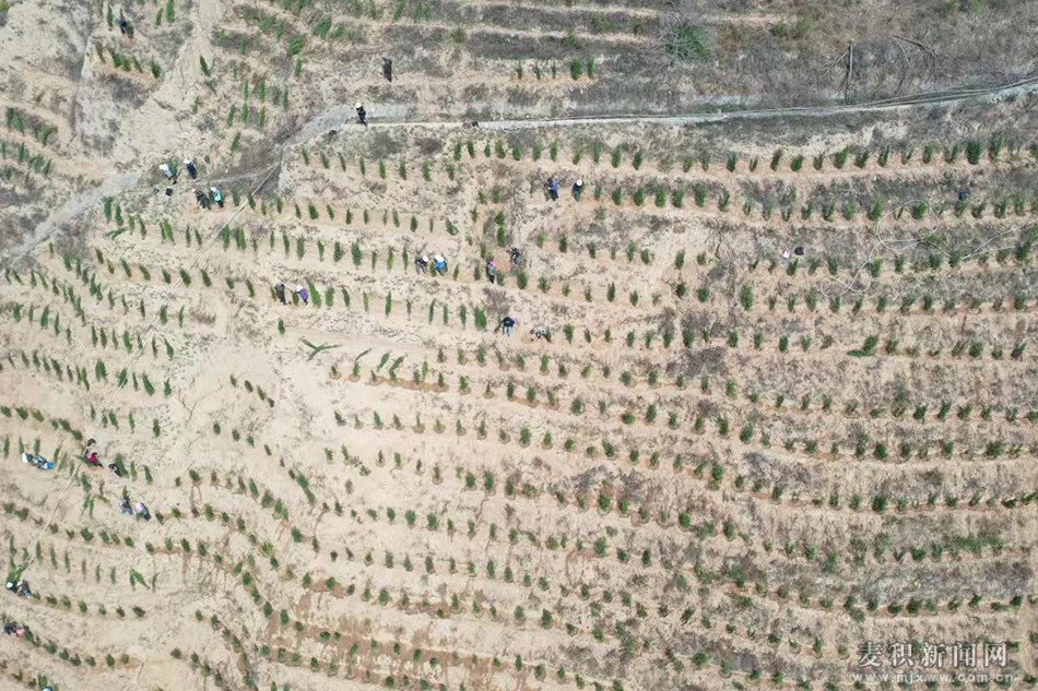 仲春時(shí)節(jié),麥積區(qū)中卦公路兩邊已是滿眼綠色,而綠化帶還在不斷向外擴(kuò)展。極目遠(yuǎn)眺,青翠的苗木給原本一片蒼白的山脊披上了綠裝。自今年3月份以來(lái),麥積區(qū)卦臺(tái)山景區(qū)春季造林點(diǎn)上就十分熱鬧,植樹(shù)工人們分工合作,挖坑、培土、栽苗、澆水,迅速拉開(kāi)了全區(qū)春季綠化的序幕。麥積區(qū)林草局種苗站站長(zhǎng)裴棟棟介紹:“麥積區(qū)2022年春季造林卦臺(tái)山點(diǎn)大地埂栽植共1100畝左右,地埂總長(zhǎng)度69000多米,共栽植塔柏28000株,現(xiàn)已全部完成栽植。”