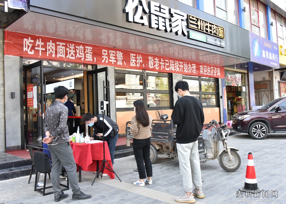 在麥積區(qū)小型餐飲開放限制性堂食服務(wù)的第一天,記者在多家餐飲門店看到,入口處都設(shè)有專區(qū),供顧客掃碼、測(cè)溫、消毒,在適度控制營(yíng)業(yè)規(guī)模和客流量的基礎(chǔ)上,開放餐飲堂食。