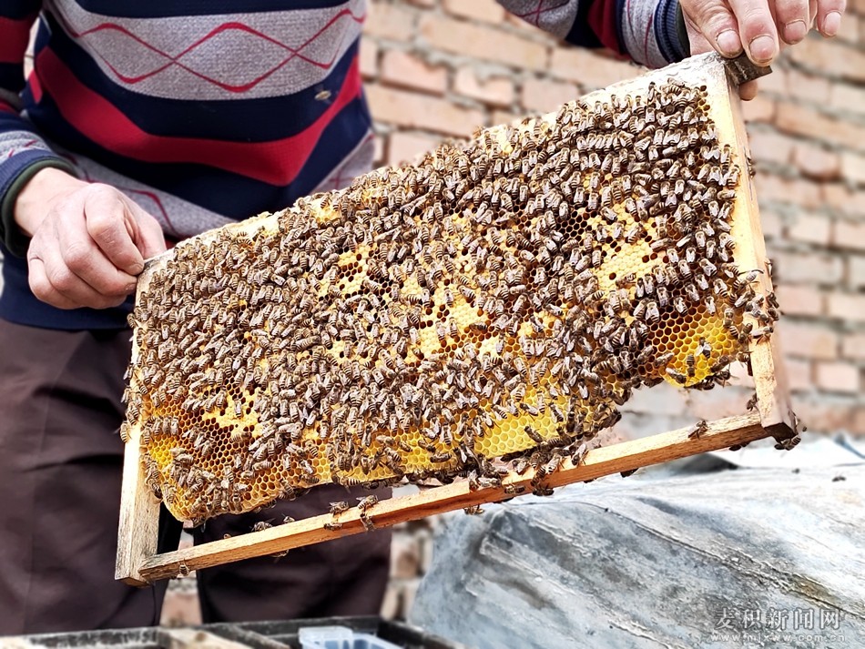 石咀村養(yǎng)蜂戶沈祖?zhèn)悘?018年開始養(yǎng)蜂,到現(xiàn)在已經(jīng)算是一名“老蜂農(nóng)”了,開箱、看蜂、取蜜等技術(shù)活,對于他來說已經(jīng)是輕車熟路!梆B(yǎng)蜂可以給家庭帶來一定的收入,政府給我們每戶發(fā)10箱蜂兒,現(xiàn)在都養(yǎng)了五六十箱了!笔状屦B(yǎng)蜂戶沈祖?zhèn)愓f道。