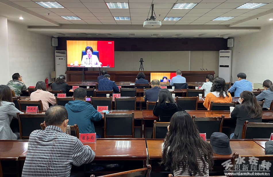 區(qū)政府副區(qū)長成紅梅及區(qū)直相關(guān)部門、單位主要負(fù)責(zé)人在麥積分會場收聽收看會議!揪庉 劉美莉】