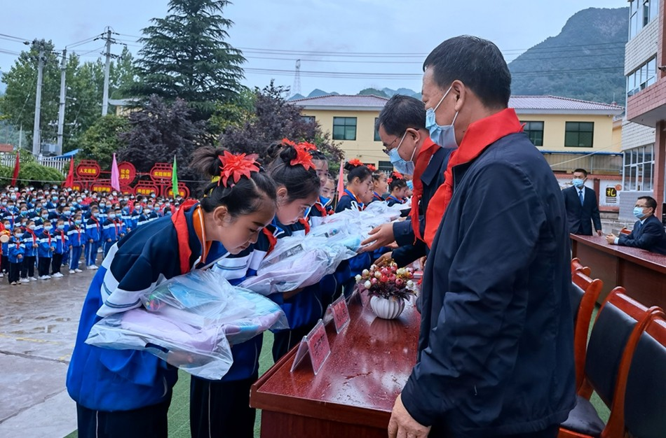 活動(dòng)開始,少先隊(duì)員代表為各位來(lái)賓佩戴紅領(lǐng)巾,各位領(lǐng)導(dǎo)、嘉賓為學(xué)生代表發(fā)放慰問(wèn)品。