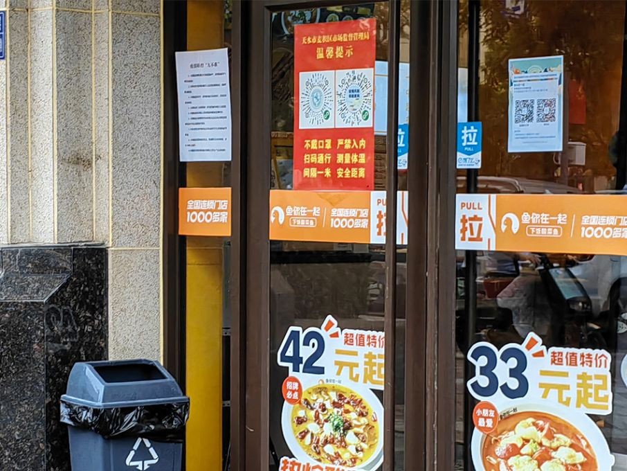 近日,記者來到盛達(dá)廣場、景園城附近的餐飲門店,看到店鋪都嚴(yán)格落實常態(tài)化疫情防控措施,做好管理。所有店鋪均在門口顯著位置設(shè)置了“健康碼”和“場所碼”,并要求入店顧客佩戴好口罩。一些店鋪在門口放置了紙質(zhì)表格,以方便對不會操作智能手機的老年人進(jìn)行信息登記。同時在等候、結(jié)賬、取餐區(qū)域設(shè)置了“一米線”。