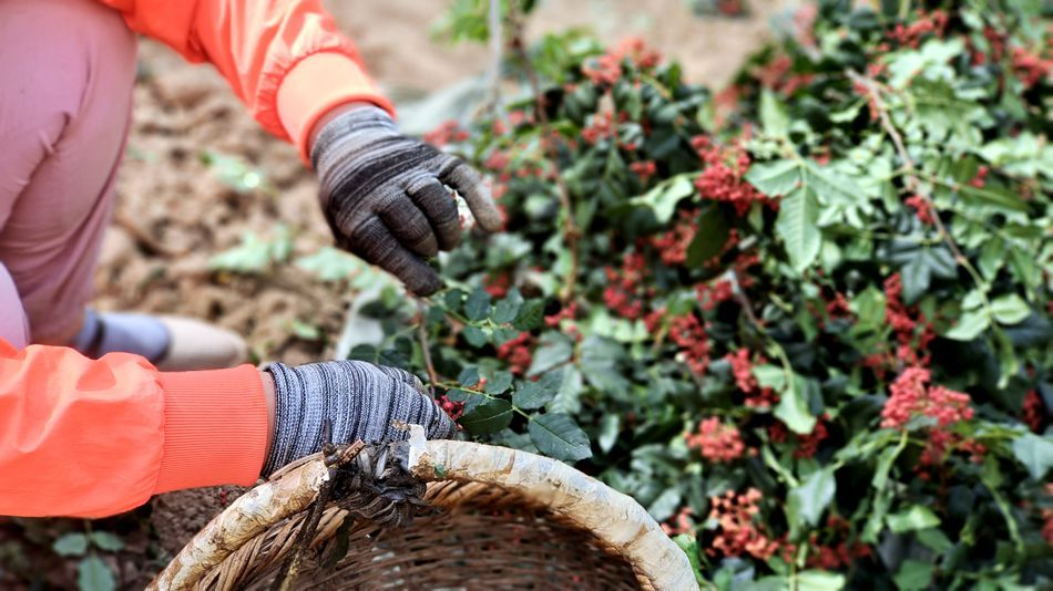 從早上五點(diǎn)起床開(kāi)始準(zhǔn)備,再步行到花椒地里,村民邱方慧一家已經(jīng)在自家花椒地里忙碌了大半天。邱方慧的手指在花椒枝里嫻熟又靈活地翻動(dòng)著,一簇簇花椒就掉落在了竹籃里。邱方慧說(shuō),她是專(zhuān)程從外地趕回來(lái)幫著家里采摘花椒的。今年的雨水少,相較往年采摘期晚了些,可是串串顆粒飽滿(mǎn),紅得均勻,花椒產(chǎn)量也好!拔覀兗疫@個(gè)花椒大概種了7、8年了,我們是從7月15號(hào)左右開(kāi)始采摘的。今年的產(chǎn)量相對(duì)往年稍微高一點(diǎn),希望能賣(mài)個(gè)好價(jià)錢(qián)!鼻穹交鄹吲d地說(shuō)。