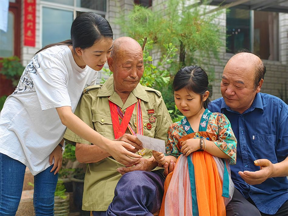 憶崢嶸歲月,敬退伍老兵。近年來,國家對退役軍人的優(yōu)待政策越來越多,在全社會營造了民擁軍、軍愛民的濃厚氛圍,增強了退役軍人的榮譽感和幸福感!坝捎谖腋赣H年齡大了,黨和政府對我父親一直比較關(guān)心,像建軍節(jié)會對我父親進(jìn)行慰問。還有民政上的工作人員經(jīng)常來,關(guān)愛老人身體健康,幫助我們搞一搞衛(wèi)生,看看健康狀況。我們家確實很感激黨和政府對我們的關(guān)心和愛護(hù)!蓖魰悦髡f道。