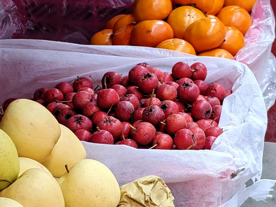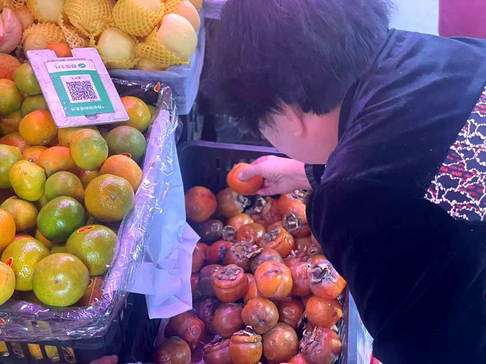 “霜降以后,我們這邊的柿子就大量上市了,這個是新品種,不用水漿直接就可以吃,口感比較偏脆甜,這個是越放越好吃,買的人挺多,挺受大家歡迎的。”某水果攤位老板張帥說。