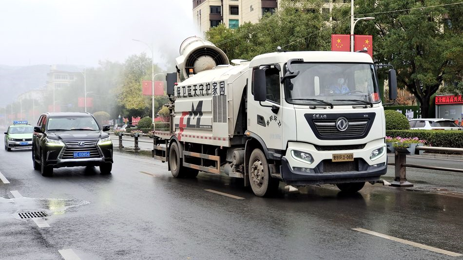 據(jù)了解,為了高標準完成城區(qū)路面日常清掃作業(yè)任務,麥積區(qū)環(huán)衛(wèi)中心出動洗掃車8輛、道路沖洗車3輛、灑水車7輛、大型噴霧車2輛、小型電動噴霧車2輛、護欄清洗車1輛,同時增加灑水降塵、噴霧抑塵作業(yè)頻次,加強濕法清掃、高壓沖洗的面積和頻次,并安排環(huán)衛(wèi)工人進行日常清掃作業(yè),有效降低道路揚塵產生。