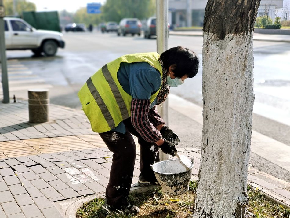 據(jù)了解,涂白劑是以生石灰、石硫合劑、水和鹽等為原材料配制的藥液。涂白劑作用之一是能將病菌殺死,降低蟲害感染力,還可避免動物啃咬,起到殺菌消毒的作用;二是給樹木刷白可以反射過多的陽光,降低樹干晝夜溫差,防止樹木主干被凍傷,起到防寒保暖的作用。