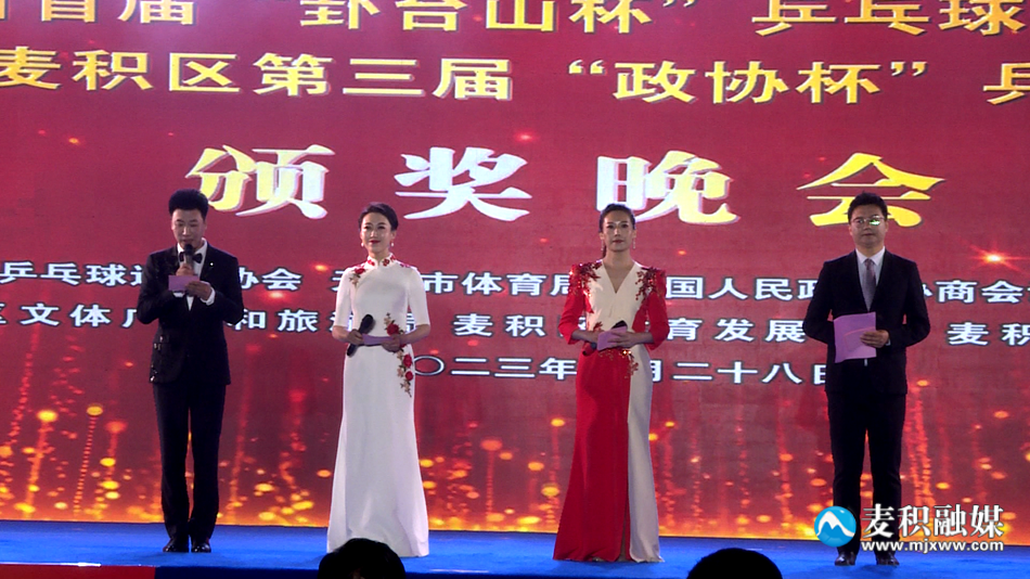 麥積區(qū)融媒體中心訊(記者 董潔 劉秋鈺)5月28日,甘肅省首屆“卦臺(tái)山杯”乒乓球邀請(qǐng)賽暨麥積區(qū)第三屆“政協(xié)杯”乒乓球比賽閉幕式及頒獎(jiǎng)晚會(huì)在麥積區(qū)道北群眾文化體育活動(dòng)中心綜合館舉行。