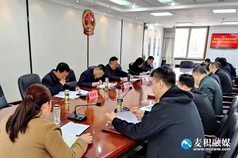 麥積區(qū)融媒體中心訊(記者 莫哲濤) 3月28日,麥積區(qū)人大常委會黨組召開理論學(xué)習(xí)中心組學(xué)習(xí)會議。區(qū)人大常委會黨組書記、主任趙繼文主持會議,區(qū)人大常委會副主任楊彥芳、高炳蔚、蒲海濱、謝崇太出席會議。