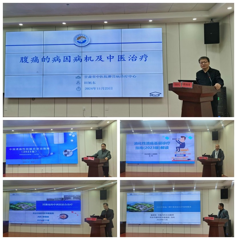 為進一步提升基層醫(yī)生對消化性潰瘍疾病的診斷與治療能力,推動中西醫(yī)結合在該領域的深入探索與實踐,11月23日,由麥積區(qū)中醫(yī)醫(yī)院(市二院南院區(qū))承辦的甘肅省中醫(yī)藥繼續(xù)教育項目-“消化性潰瘍中西醫(yī)結合診療進展”培訓班在醫(yī)院多功能廳舉行。甘肅省中醫(yī)院質控處處長、脾胃病診療中心主任田旭東教授和脾胃病科主任李生財教授及天水市中西醫(yī)結合醫(yī)院(市二院)脾胃病科主任王榮應邀蒞臨并授課。培訓由市二院副院長閆振錄主持。醫(yī)院班子成員、相關科室醫(yī)護人員和轄區(qū)基層醫(yī)院消化內科專業(yè)醫(yī)務人員約100余人參加。
