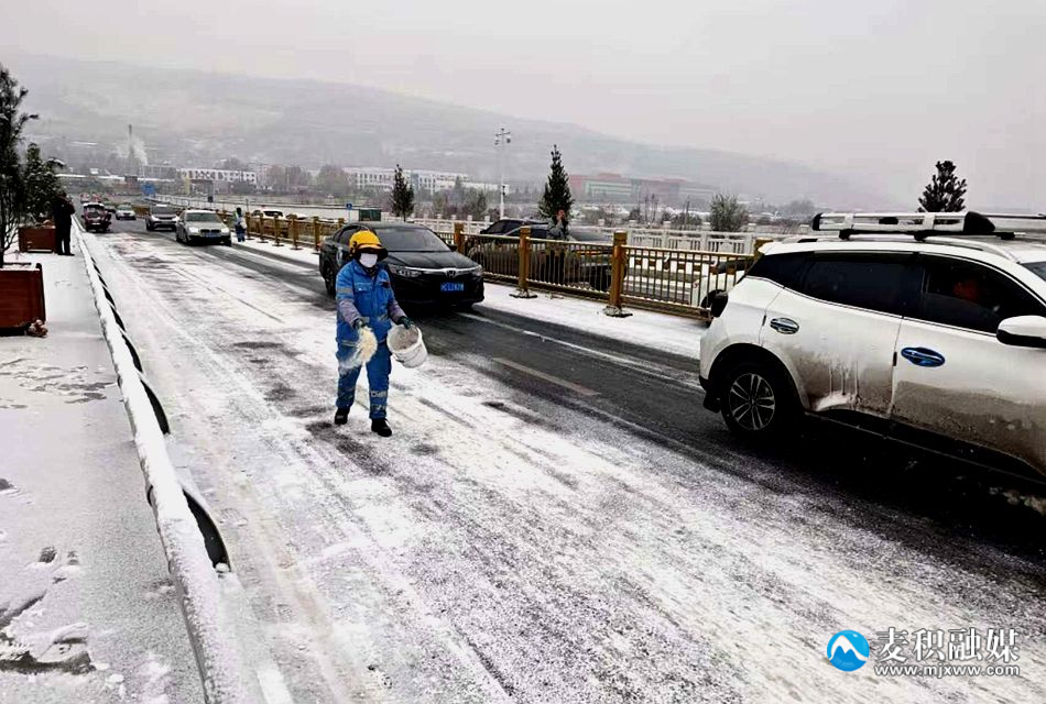 截至10日10時,麥積區(qū)環(huán)衛(wèi)中心共出動環(huán)衛(wèi)工人300余人開展除雪工作,撒鹽和融雪劑2噸,最大限度地減少了降雪對群眾出行造成的影響,保障了市民出行安全。