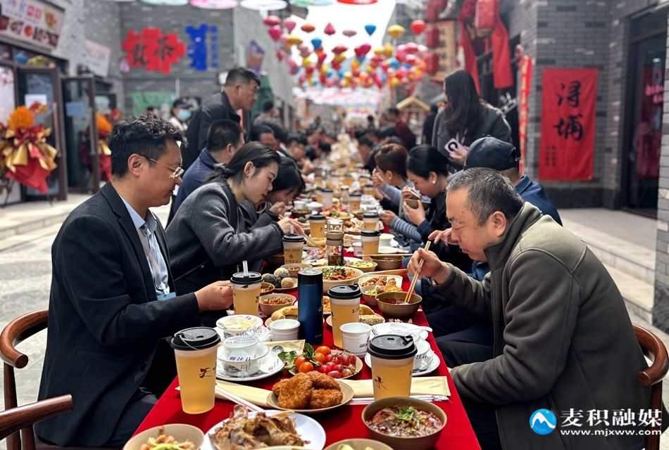 活動當天,陽光明媚,白鹿倉景區(qū)內(nèi)人潮涌動、熱鬧非凡。在簡短而熱烈的開幕儀式后,一場別具一格的“千桌萬人”共品麻辣燙plus活動率先登場。網(wǎng)絡大V們與現(xiàn)場游客一同圍坐在整齊排列的長桌旁,盡情品嘗天水特色小吃及麻辣燙。鮮美的湯底搭配豐富多樣的食材,每一口都滿是醇厚滋味。大家一邊享受美食,一邊交流著對天水美食文化的感受,現(xiàn)場氣氛熱烈而歡快。