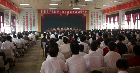 從8月7日起,秦安縣四大組織聯(lián)系鄉(xiāng)的33名縣級領(lǐng)導(dǎo)干部,帶領(lǐng)從縣直部門和各鄉(xiāng)鎮(zhèn)抽調(diào)的1116名機關(guān)干部,組成工作隊分赴全縣17個鄉(xiāng)鎮(zhèn)的515個村,開展為期一月的以“圍繞新農(nóng)村建設(shè),開展調(diào)查摸底、宣傳發(fā)動、發(fā)現(xiàn)問題、解決矛盾,整體推進各項工作”為主題的千名機關(guān)干部下基層活動。