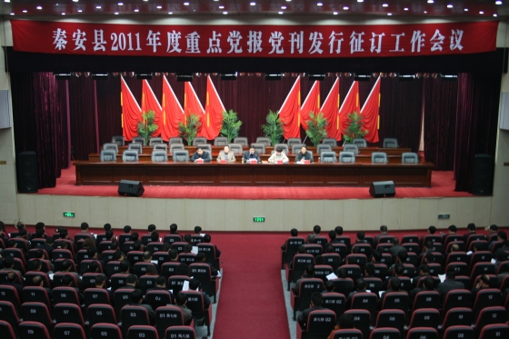 11月10日上午,秦安縣2011年度黨報(bào)黨刊發(fā)行工作會(huì)議在行政中心禮堂召開(kāi)。會(huì)議傳達(dá)了全市黨報(bào)黨刊發(fā)行工作會(huì)議精神,總結(jié)了2010年度黨報(bào)黨刊發(fā)行工作,表彰了發(fā)行征訂工作先進(jìn)單位,安排部署2011年度的黨報(bào)黨刊發(fā)行工作,進(jìn)一步組織動(dòng)員全縣上下統(tǒng)一思想、提高認(rèn)識(shí),全面完成市上下達(dá)的征訂任務(wù)。會(huì)議要求,全縣各級(jí)黨政組織要進(jìn)一步加強(qiáng)領(lǐng)導(dǎo),強(qiáng)化措施,確保黨報(bào)黨刊征訂穩(wěn)中有升。縣委副書(shū)記、縣長(zhǎng)王東紅,縣委常委、組織部長(zhǎng)郭海軍,縣委常委、宣傳部長(zhǎng)李尚平,縣委常委、興國(guó)鎮(zhèn)黨委書(shū)記楊喜春,各鄉(xiāng)鎮(zhèn)黨委書(shū)記,縣直及駐秦各單位主要負(fù)責(zé)同志,部分企業(yè)負(fù)責(zé)人,全縣中小學(xué)校長(zhǎng)、學(xué)區(qū)負(fù)責(zé)人共200多人參加會(huì)議。會(huì)議由縣委副書(shū)記程江芬主持。