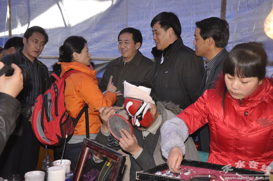 (市委常委、宣傳部部長(zhǎng)王光慶,秦安縣委書(shū)記徐健、縣長(zhǎng)王東紅,省廣電總臺(tái)電視新聞中心主任周尚業(yè)等領(lǐng)導(dǎo)在后臺(tái)看望央視直播記者)