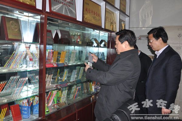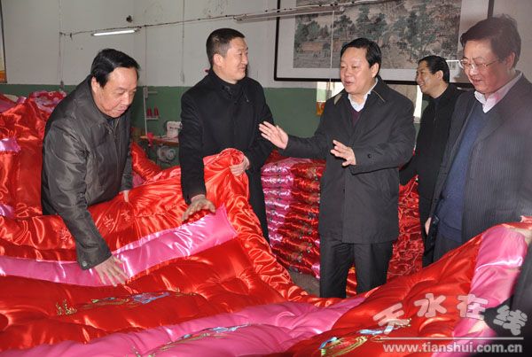楊維俊一行先后來到甘肅福雨塑業(yè)有限公司、甘肅同輝塑業(yè)有限責(zé)任公司、甘肅泰達(dá)包裝印務(wù)發(fā)展有限公司、天水銀星毛紡織有限公司、甘肅金黃河筆業(yè)有限公司、天水年年紅家紡有限公司,詳細(xì)了解了企業(yè)生產(chǎn)經(jīng)營(yíng)、工業(yè)項(xiàng)目及工業(yè)園區(qū)建設(shè)情況,聽取了秦安縣紀(jì)檢監(jiān)察工作情況匯報(bào)。