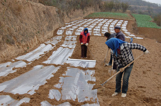 今年秦安縣繼續(xù)把旱作節(jié)水農(nóng)業(yè)技術(shù)全膜覆蓋推廣應(yīng)用作為“保增長、保民生、保穩(wěn)定”的重要措施和科技抗旱增收1號工程緊抓不放, “早”字當(dāng)頭,早規(guī)劃,早安排,早部署,早行動,堅持集中連片、點面結(jié)合的原則,按照“解凍一片,覆膜一片”的步驟,主要領(lǐng)導(dǎo)和分管領(lǐng)導(dǎo)多次深入各鄉(xiāng)鎮(zhèn)督促檢查,解決具體困難和問題,縣四大組織包鄉(xiāng)領(lǐng)導(dǎo)分赴春耕生產(chǎn)第一線,蹲點駐村,靠前指揮,落實任務(wù), 農(nóng)口部門及時抽調(diào)100名技術(shù)人員,組成10個技術(shù)服務(wù)小組,分赴17個鄉(xiāng)鎮(zhèn)的428個行政村的田間地頭進(jìn)行覆膜技術(shù)指導(dǎo),各鄉(xiāng)鎮(zhèn)黨政一把手負(fù)總責(zé),采取有效措施,廣泛發(fā)動群眾,根據(jù)地域?qū)嶋H,動員群眾在果園地里覆黑膜、預(yù)留地覆白膜,保墑蓄墑。同時,縣上及時將省級補(bǔ)貼地膜300噸地膜,鋪膜機(jī)、起壟機(jī)458臺,縣上每畝配套補(bǔ)貼1.5公斤地膜,全部落實到農(nóng)戶手中,極大地調(diào)動了群眾的積極性。農(nóng)資部門積極組織農(nóng)民群眾急需的抗旱物資,向農(nóng)民群眾調(diào)供化肥、種子、起壟覆膜機(jī)等備耕物資。目前。該縣西片以千戶為點,建立規(guī)模較大的示范基點,通過延伸,形成千戶、西川、劉坪、蓮花、五營、隴城一條線,南片以云山為點,形成中山、興豐、王尹、云山一條線,北片建成葉堡、安伏、魏店、王甫一條線的“兩點三線”的頂凌覆膜有序進(jìn)行。