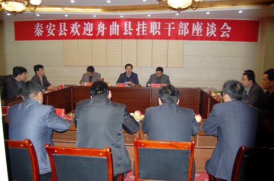 3月31日,秦安縣召開歡迎舟曲縣掛職干部座談會?h委書記徐健,縣委常委、組織部長郭海軍出席會議并講話。5名舟曲縣掛職干部及掛職干部所在鄉(xiāng)鎮(zhèn)黨委書記參加了座談會。
