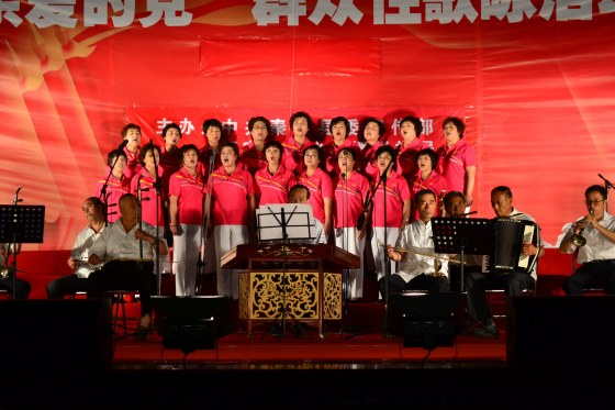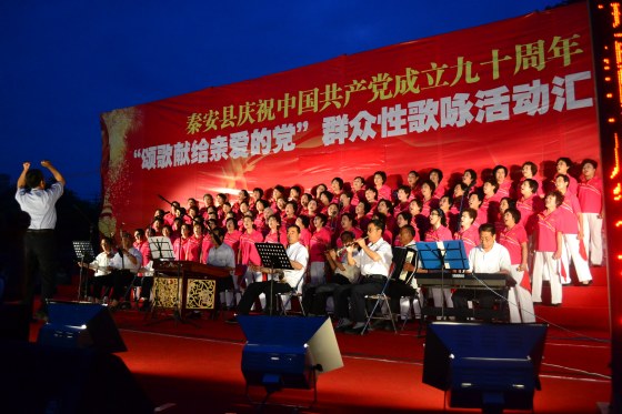 7月1晚,秦安縣興國(guó)文化廣場(chǎng)人山人海,熱鬧非凡,由秦安縣委宣傳部、縣文化廣播影視局主辦,縣文化館、縣業(yè)余紅歌合唱團(tuán)承辦的頌歌獻(xiàn)給親愛(ài)的黨”群眾性歌詠活動(dòng)匯報(bào)演出在這里舉行。來(lái)自縣業(yè)余紅歌合唱團(tuán)、廣場(chǎng)舞蹈表演隊(duì)、秦韻藝術(shù)團(tuán)的演職人員為現(xiàn)場(chǎng)觀眾帶來(lái)了《祖國(guó)你好》、《大海航行靠舵手》、《擁軍贊歌》、《洪湖赤衛(wèi)隊(duì)》等精彩的紅歌大聯(lián)唱、舞蹈、秦腔表演等節(jié)目,為黨的90歲生日獻(xiàn)上了一份厚禮。