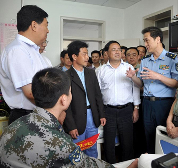 蔡曉明的事跡也受到了各級(jí)領(lǐng)導(dǎo)的高度關(guān)切。甘肅省見義勇為基金會(huì)理事長(zhǎng)李虎林、蘭州軍區(qū)空軍政治部副主任衛(wèi)明少將,甘肅省天水市委原書記張景輝、原市長(zhǎng)李文卿、軍分區(qū)司令員鄭黎,秦安縣政法委書記車學(xué)軍、政府副縣長(zhǎng)羅增芳和縣人武部政委王安軍等領(lǐng)導(dǎo),先后代表各級(jí)黨委、政府和軍隊(duì)部門,專程趕往醫(yī)院,看望慰問了蔡曉明及其家人,并贈(zèng)送了慰問金和慰問品。