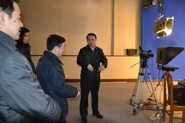 在縣文廣局,裴貴軍看望慰問(wèn)了正在電視節(jié)目播出室和制作室緊張忙碌的新聞采編人員,并與每位職工親切握手致意,叮囑廣電部門(mén)負(fù)責(zé)人要在春節(jié)期間加強(qiáng)值班,保障線路暢通和電視節(jié)目?jī)?yōu)質(zhì)安全播出。裴貴軍還詳細(xì)了解了秦安廣播電視新聞工作的總體情況,并觀看了正在制作中的新春聯(lián)歡晚會(huì)節(jié)目,希望廣電局在新的一年里要按照以科學(xué)的理論武裝人、以正確的輿論引導(dǎo)人、以優(yōu)秀的作品鼓舞人、以高尚的精神塑造人的要求,在做好全縣新聞報(bào)道工作的同時(shí),進(jìn)一步加大廣播電視事業(yè)的建設(shè)力度,把廣播電視作為政治和精神文化食糧送到千家萬(wàn)戶。