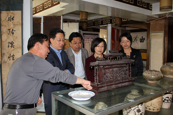 調(diào)研組一行在縣委常委、宣傳部長李愛仙的陪同下,先后來到由也堂古玩收藏館、鳳山景區(qū)建設(shè)現(xiàn)場調(diào)研,詳細(xì)了解了我縣文化產(chǎn)業(yè)的發(fā)展情況。
