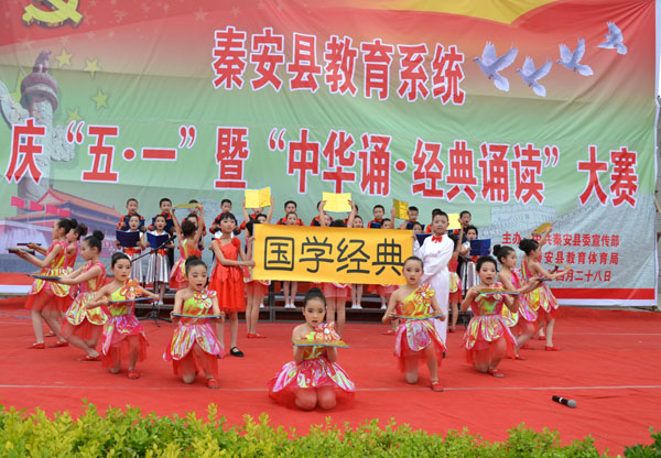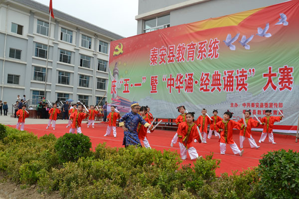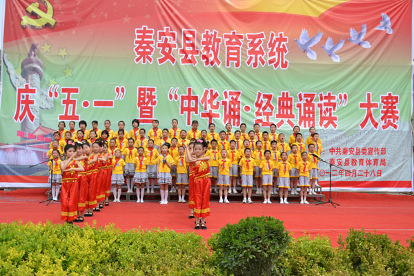 為進(jìn)一步營(yíng)造國(guó)學(xué)經(jīng)典文化學(xué)習(xí)氛圍,弘揚(yáng)民族優(yōu)秀文化傳統(tǒng),傳承中華文明,全面提升學(xué)生的語(yǔ)言文字應(yīng)用能力和綜合素質(zhì),4月28日,秦安縣舉辦了教育系統(tǒng)慶“五·一”暨“中華誦·經(jīng)典誦讀”大賽。