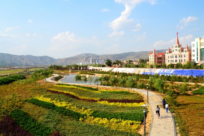 葫蘆河生態(tài)園為縣城增添了一道亮麗的風(fēng)景。昔日的葫蘆河城區(qū)段晴天臭味熏天,雨季禍及兩岸,恰似爛繩污帶,系于古城腰間。為解除這一“頑疾”,秦安縣近年來經(jīng)過大手筆生態(tài)治理,葫蘆河畔已煥發(fā)出了勃勃生機(jī),人居其中,心曠神怡!如今的葫蘆河生態(tài)園里健身的、讀書的、散步的……來這里休閑鍛煉的人絡(luò)繹不絕,真正成了人們休閑娛樂的好去處。進(jìn)一步提升了城市品位、改善了人居環(huán)境、塑造了秦安新形象。蘆河生態(tài)園位于城區(qū)葫蘆河左側(cè),面積達(dá)18萬平方米,自北向南分為文化休閑區(qū)、體育活動區(qū)、安靜休息區(qū)三個功能分區(qū)。2.1km左岸河道景觀線,18萬平方米的生態(tài)綠地面、5個人工水面,六個節(jié)點(diǎn)廣場和水域的一線、二面、三區(qū)、六節(jié)點(diǎn)構(gòu)造了整體景觀形象。三國文化廣場、女媧文化廣場、大地灣文化廣場將秦安積蘊(yùn)深厚文化再現(xiàn)的淋漓盡致。長達(dá)接近3公里的園路,或大理石、或碎石、或造型、或上寫詩句、或十二生肖、或植物花草鋪就等等,將整個園區(qū)串聯(lián)起來。面積達(dá)10多萬平方米的綠化地,映入眼簾的是針葉林、闊葉林混植,且有花草樹木配植。園區(qū)內(nèi)星星可見奇石點(diǎn)綴,更有自然壯的不同水域,活了園區(qū)樂了市民。網(wǎng)球場、羽毛球場、籃球場按照體育標(biāo)準(zhǔn)化要求建設(shè),愛好者或練球或比賽,有效推動了全民健身活動的開展。