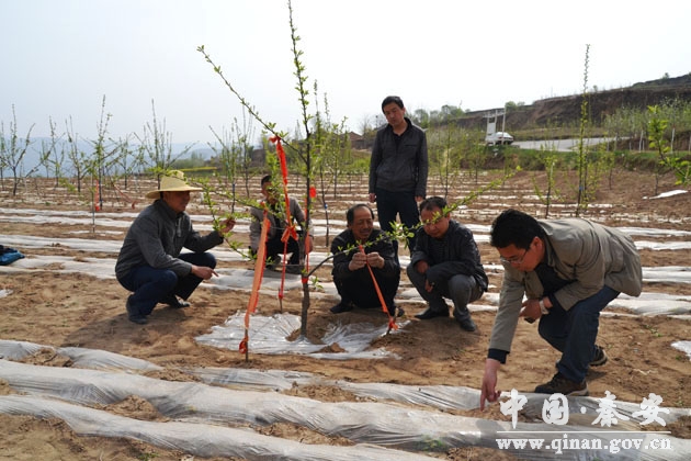 “我們要抓住這個(gè)關(guān)鍵時(shí)期,此時(shí)的樹(shù)干剛復(fù)活,枝條是最柔軟的時(shí)候,這個(gè)時(shí)候給幼樹(shù)拉枝定型是最好不過(guò)了。你看這里,這個(gè)輔助枝條應(yīng)該下拉……”縣果業(yè)局的技術(shù)人員正在不厭其煩地給何楊村的果農(nóng)詳細(xì)地講解著幼樹(shù)拉枝定型的知識(shí),果農(nóng)專注的表情完全不亞于課堂上聽(tīng)講的學(xué)生。果農(nóng)趙新元家里一共5畝果園,雖然自己滾打摸爬已經(jīng)有了好幾年管理果園的經(jīng)歷,但積累的經(jīng)驗(yàn)有限,對(duì)果園管理感覺(jué)越來(lái)越力不從心了!靶液眠@次政府派來(lái)了技術(shù)人員,他們親自來(lái)到果園里幫我管理果樹(shù),真是太及時(shí)了!彼硎疽欢ㄓ行判墓芾砗米约旱墓麍@,并把自己學(xué)到的知識(shí)和其他果農(nóng)進(jìn)行交流,爭(zhēng)取讓自己的果園早日發(fā)揮效益。