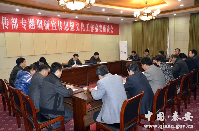 在召開的座談會上,縣委常委、宣傳部長李愛仙就2013年秦安縣宣傳思想和精神文明建設(shè)工作及文化產(chǎn)業(yè)工作作了詳細匯報;縣委宣傳部、文明辦、外宣辦、文廣局、文聯(lián)等部門負責(zé)人圍繞全縣宣傳思想工作特色亮點、意識形態(tài)領(lǐng)域工作、互聯(lián)網(wǎng)宣傳監(jiān)管、推進華夏文明傳承創(chuàng)新區(qū)建設(shè)、文化藝術(shù)傳承創(chuàng)新等方面作了交流發(fā)言。