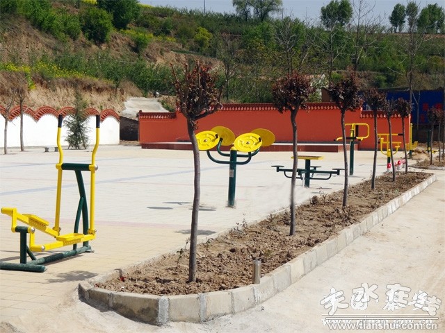 在村文化廣場上,各類體育運動器械恰到好處豎立著,農(nóng)家書屋等公共文化生活設施一應俱全。老人、小孩子們此刻正聚集在村級文化廣場上做著運動,太空漫步器,太極推手,蹬力訓練器上成了他們的最愛,大家玩著、聊著、笑著,幸福的笑容浮動在他們的臉上,歡愉的笑聲久久回蕩在廣場之上。