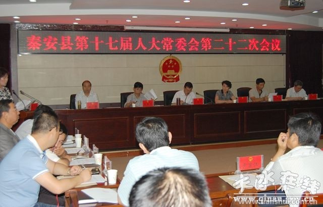 8月29日,秦安縣召開縣十七屆人大常委會第二十二次會議,會議在縣行政中心三樓北會議室舉行,縣人大常委會主任郭海軍主持會議,縣人大常委會副主任劉小秦、陳秦生、張雙喜、宋捷和常委會組成人員出席會議?h政府副縣長扇忠瑜列席會議,列席會議的還有縣法院、檢察院、縣委組織部、政府辦、人社局、民政局負(fù)責(zé)人,不是縣人大常委會委員的辦公室、各工委負(fù)責(zé)人。