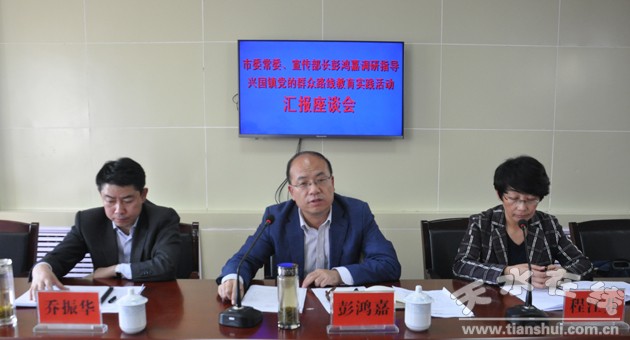 當(dāng)天,彭鴻嘉深入興國鎮(zhèn),通過現(xiàn)場調(diào)研、查閱資料、個別訪談和座談交流等方式,對興國鎮(zhèn)解決“四風(fēng)”問題,推進整改落實、建章立制工作進行了全面了解。