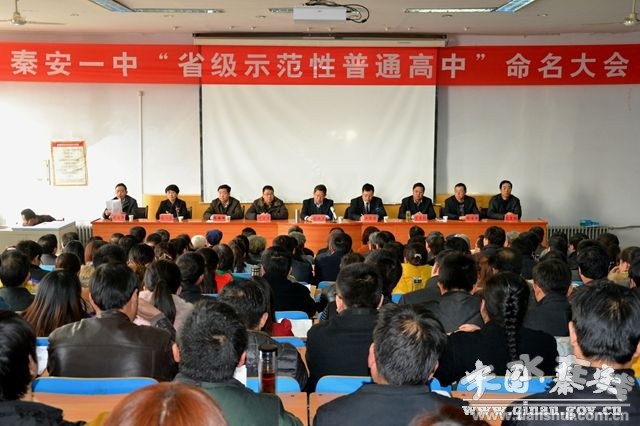 在揭牌儀式上,市教育局黨委副書記張璞銀宣讀了甘肅省教育廳命名秦安一中等4所學(xué)校為“甘肅省示范性普通高中”并頒牌的決定;秦安一中負(fù)責(zé)人介紹了省級(jí)示范學(xué)校創(chuàng)建情況;教師代表、學(xué)生代表作了發(fā)言;蘭州大學(xué)副校長安黎哲、市政府副市長張建杰、縣委書記王東紅分別作了講話?h委副書記、縣長程江芬主持揭牌儀式。