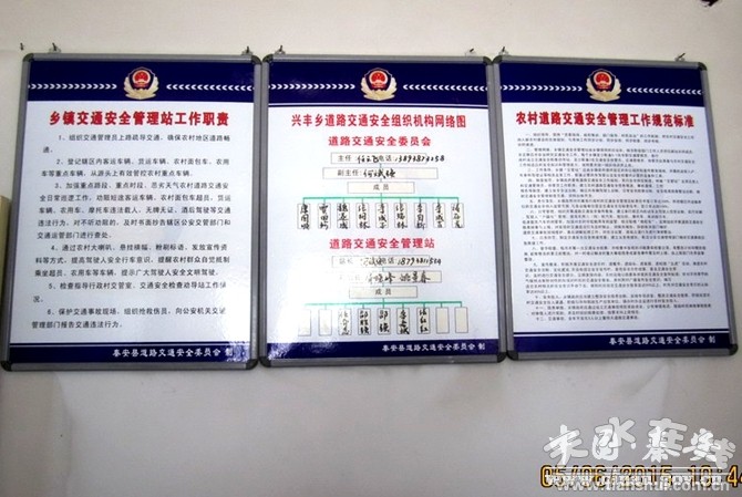 針對這一突出問題,秦安縣委、縣政府審時度勢,把農(nóng)村道路交通安全作為一件大事來抓,立足于農(nóng)村交通管理體制、完善農(nóng)村道路交通安全設(shè)施、預(yù)防農(nóng)村道路交通事故等方面,按照“試點先行、取得經(jīng)驗、全面鋪開”原則,及時在全縣各鄉(xiāng)鎮(zhèn)成立了“兩站一室”,既鄉(xiāng)鎮(zhèn)交管站、行政村交管室、農(nóng)村道路勸導(dǎo)站,確保農(nóng)村道路交通安全。
