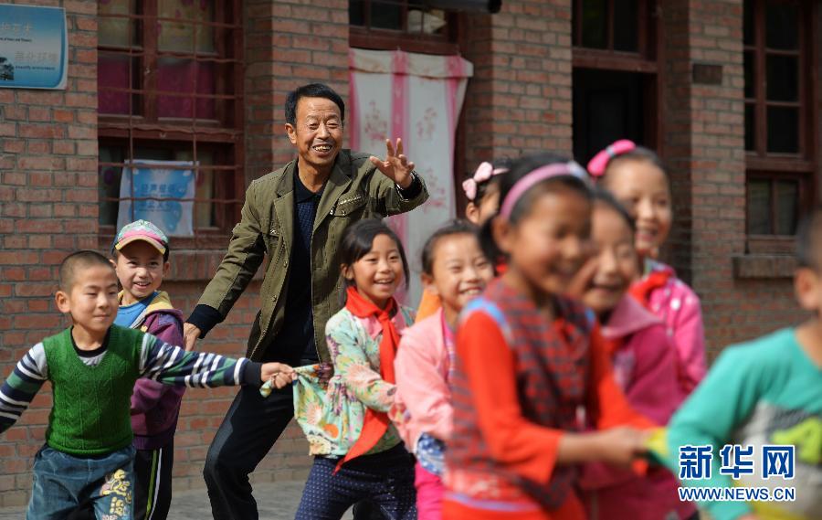 隴城鎮(zhèn)教育園區(qū)教師李安喜在甘肅省天水市秦安縣隴城鎮(zhèn)山王小學(xué)帶領(lǐng)孩子們做游戲(9月18日攝)。新華社記者 陳斌