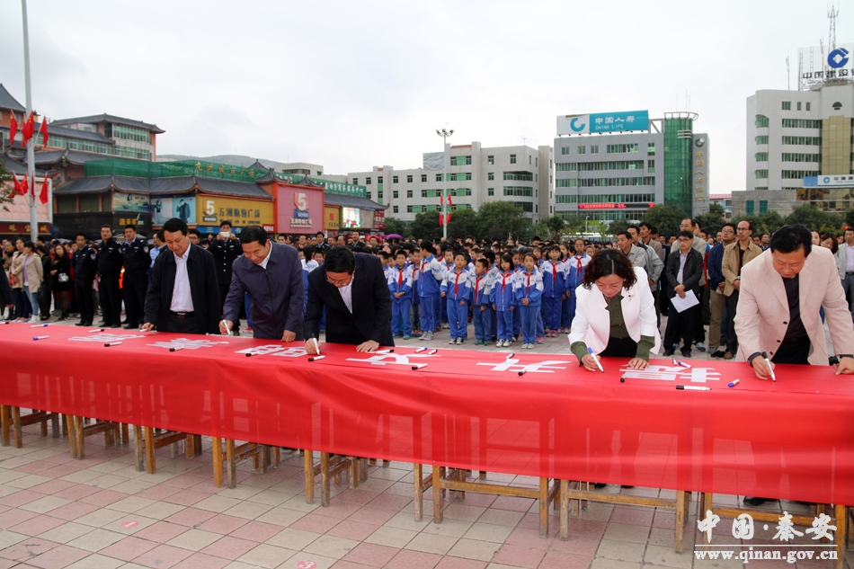 隨后,參加啟動儀式全體領(lǐng)導(dǎo)、干部職工、學(xué)生和廣大市民在“倡導(dǎo)文明新風(fēng)、提升文明素質(zhì)、爭做秦安文明人”百米橫幅上簽名。