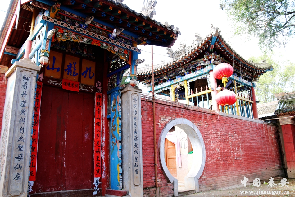 九龍山在簸箕灣梁突兀渾起,又陡然跌落,山下有棲鳳臺(tái),建有九龍廟。廟始建于元大德八年(1304年),祠九龍山圣母。據(jù)現(xiàn)存于九龍廟的元代碑文記載:“九龍層巒疊嶂,巨壑幽谷,啟肇原隴……草木貢四時(shí)之秀,煙霞共千山之奇,真仙靈之窟宅。”碑文記載地震之后,在九龍廟附近,涌出一眼清泉,為九龍山圣母之湫泉,稱九龍湫!熬琵堜锌摺币矠椤肚匕仓尽匪Q“八觀”之一,清乾隆二十七年曾在湫上建起“八卦玄井亭”。清代牛運(yùn)震、董秉純、諸為霖等秦安知縣和孫海等地方士紳鄉(xiāng)賢每至天旱之年常去此地取湫求雨,留下許多文字和碑刻。附近另有五女峰,喇嘛墳,邊家河脫骨寺等圣母圣跡。
