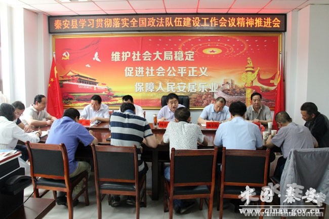 6月12日,秦安縣委常委、政法委書記楊喜春主持召開學習貫徹落實全國政法隊伍建設工作會議精神推進會,縣委政法委全體干部、縣直政法各部門分管領導、政工科(室)負責人參加會議。